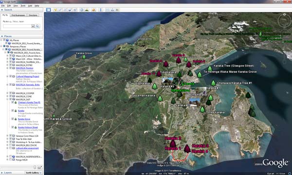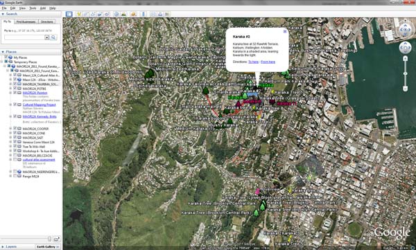 Karaka trees are a living reminder of the Māori tradition of harvesting and eating Karaka berries. In this mapping project students formed groups to identify 10-20 Karaka trees within the Wellington area. These field observations of Karaka were then mapped and described using Google Earth. Through these projects, students learned the value of Karaka and the importance of correct species identification for traditional Māori communities. Students’ work was compiled into a class map showing a rough distribution of Karaka in Pōneke (Wellington), connecting to work done by the Department of Conservation with Dr Bruce McFadgen.